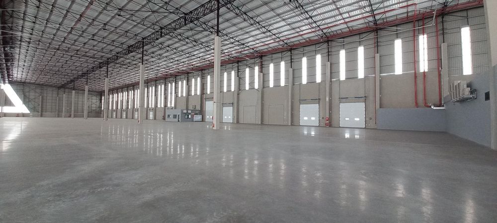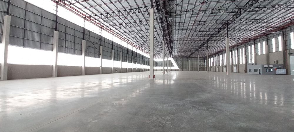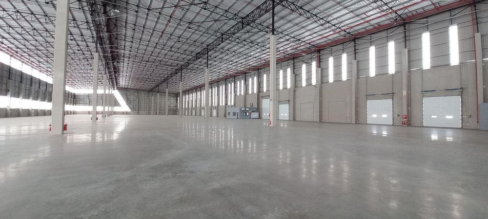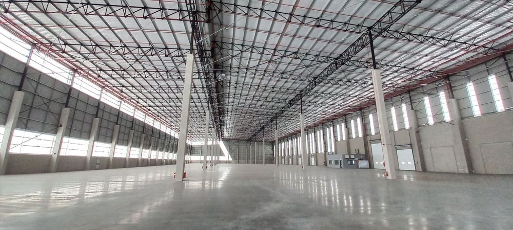 Modern warehouse infrastructure with natural lighting, generous height, and wide-span internal layout